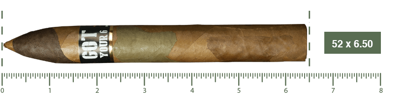 Got Your 6 es una creación única de El Artista. El uso de cuatro diferentes capas para crear la apariencia de camuflaje hacen que este cigarro de textura suave llame la atención. El capote Olor Dominicano y las tripas Dominicanas, Nicaragüenses y de Pennsylvania descansan sobre una capa Connecticut con diferentes cortes de tabaco Candela, Sumatra y Habano; dando unas notas de especias, crema, pimienta, tierra, cuero y madera para una fumada excelente.