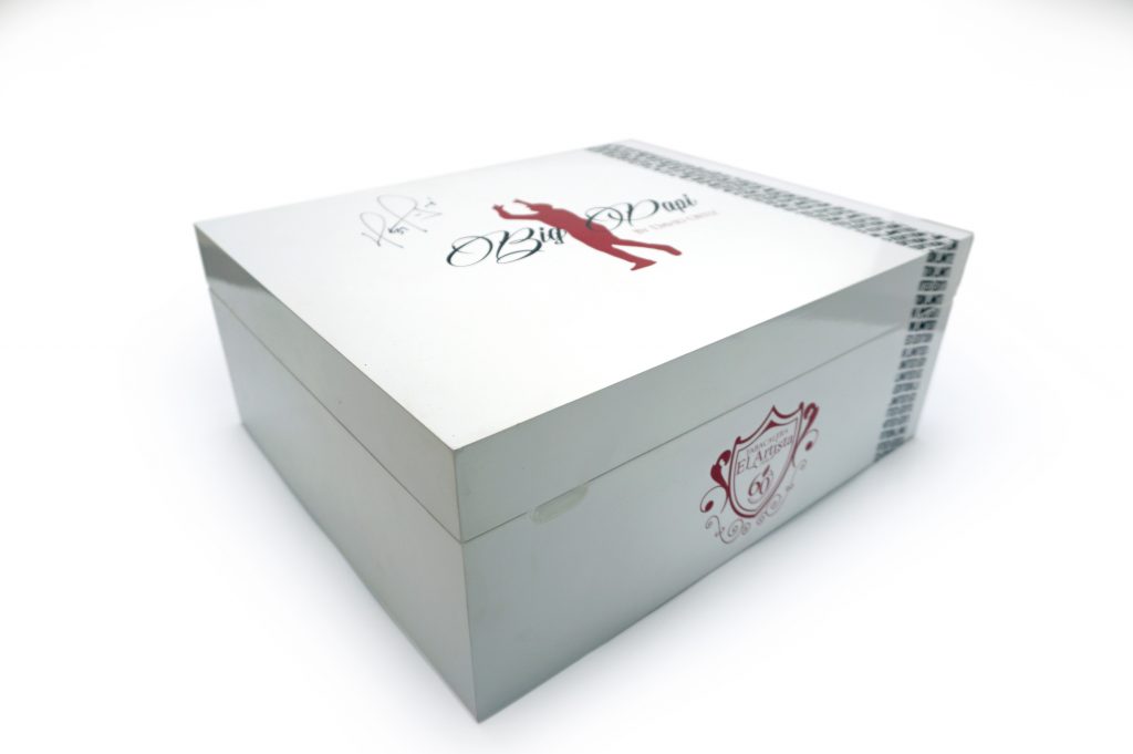 The quality of the humidor is impeccable. Composed of Spanish cedar and okoume wood, the humidor is painted bright white, embellished with branding, individually signed by Ortiz, then sealed and polished to a high luster piano-style finish.
